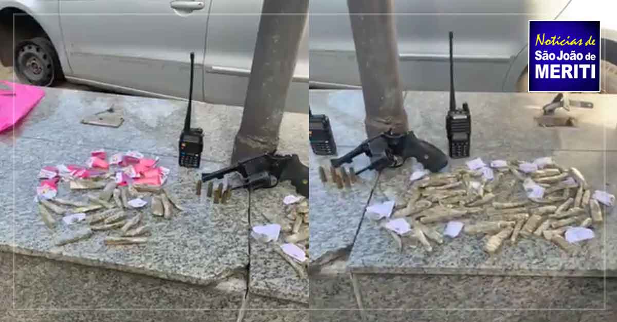 Um revólver, dois rádios transmissores, 10 pinos de cocaína e 100 cigarros de maconha foram apreendidos. Os acusados foram encaminhados à 54ª DP para registro da ocorrência, onde permaneceram presos.